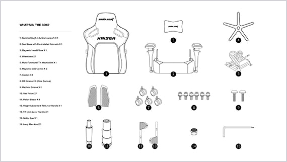The overall installation process is straightforward and easy, requiring only the included Allen wrench and a few screws. Each package includes a user manual with an assembly guide that provides clear instructions for assembling your chair.