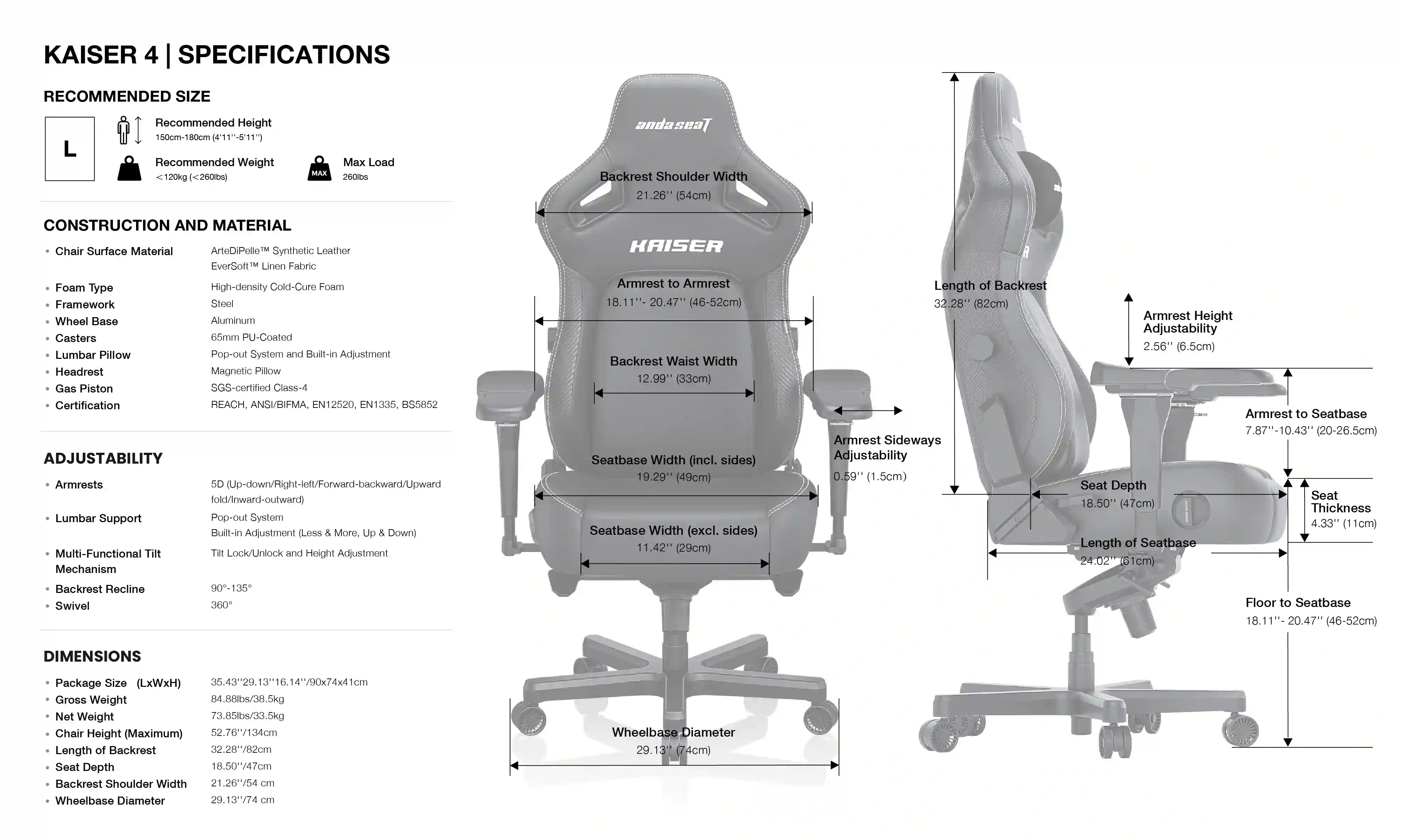 What are the height and weight limits for the AndaSeat Kaiser 4?